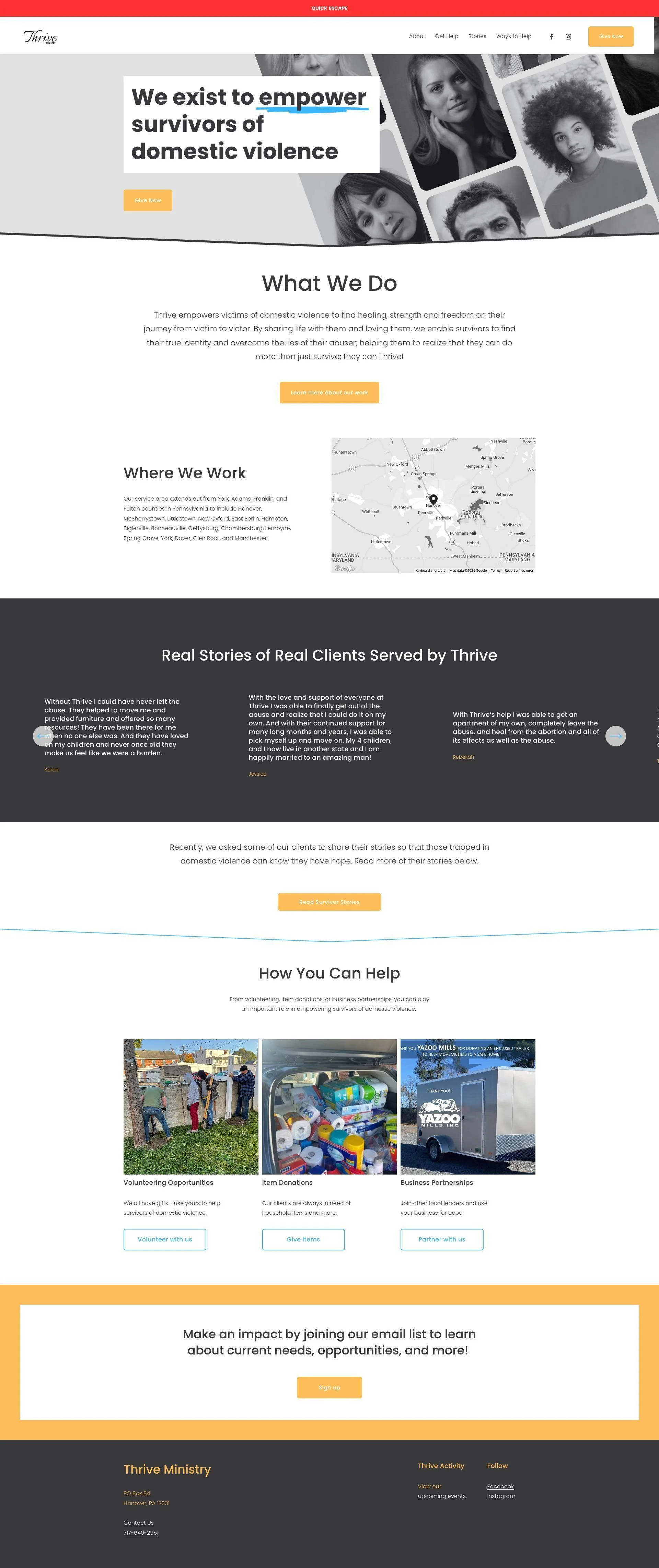 Thrive Ministry needed a responsive, modern-looking website to better reach their donors and clients with their mission. It was a total overhaul. Click on each photo to see the details.